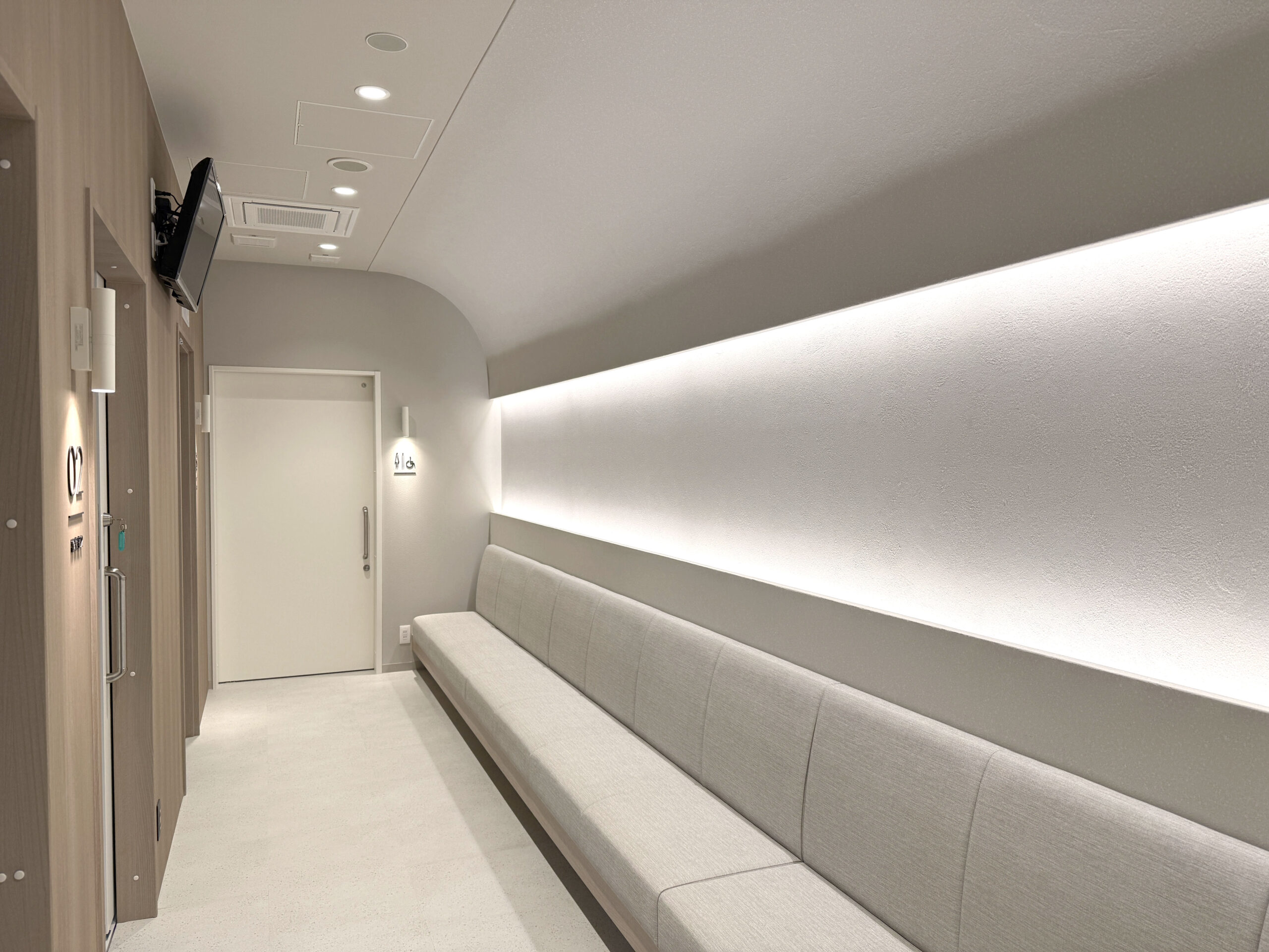 柔らかい光と質感のあるテクスチャーによって落ち着いた待合空間になりました。