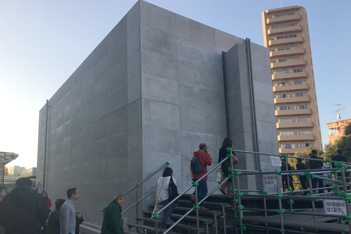 アプローチはこんな感じで仮設建築物の入ってゆく感じです。
