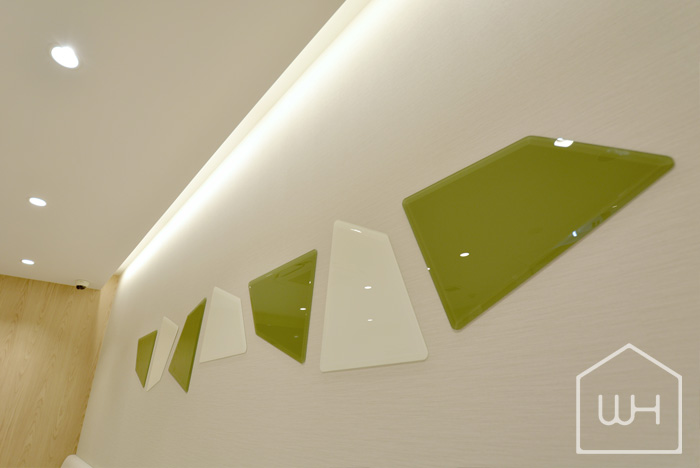 アクセントとしてグリーンとホワイトの不等辺四角形をモチーフにしてみました。