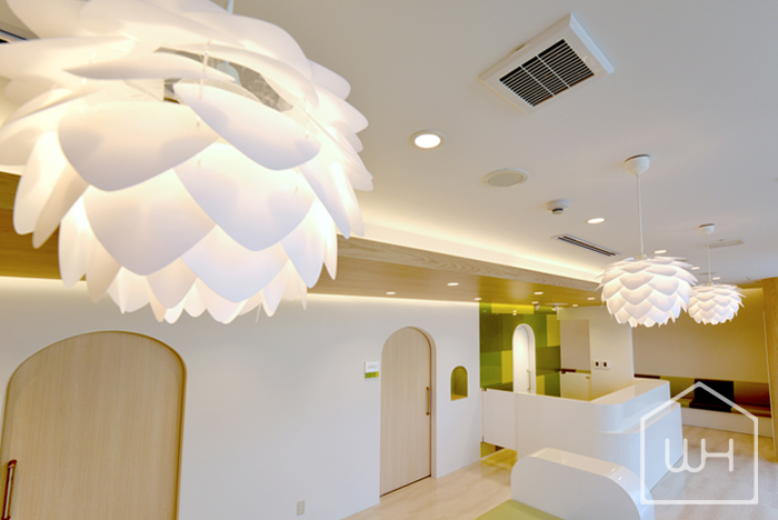 今回のデザインの特徴は曲線が協調されたドアや家具と落ち着いたグリーンを基調としたカラーコーディネートで個性的でありつつ、とてもやわらかい空間となっています。