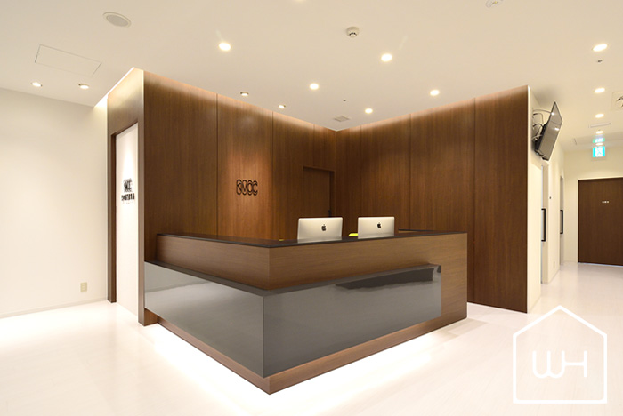 こちらは受付カウンター。以前、ブログで製作中の状態をお伝えしましたが、こんなカッコいいカウンターになりました。天板には人造大理石を採用しています。
