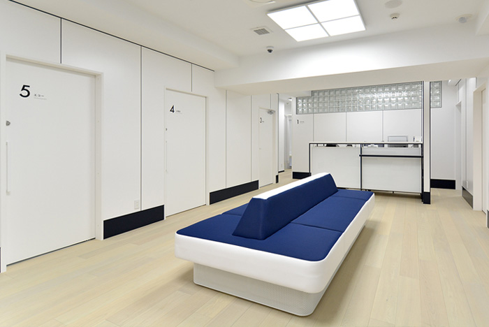 虎の門ですでに開業されていた「チームメディカルクリニック」様(健診・整形外科・MRI)のリブランディングを兼ねた改装プロジェクトで、内装以外にも健診着や院内グッズ・ホームページなどもビームスさんが監修しています。