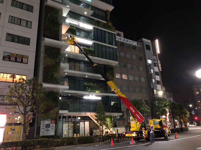 高所作業車で作業をおこなう必要があるため、警察に道路使用許可を取ったり、ガードマンを手配したりとしっかり準備をします。