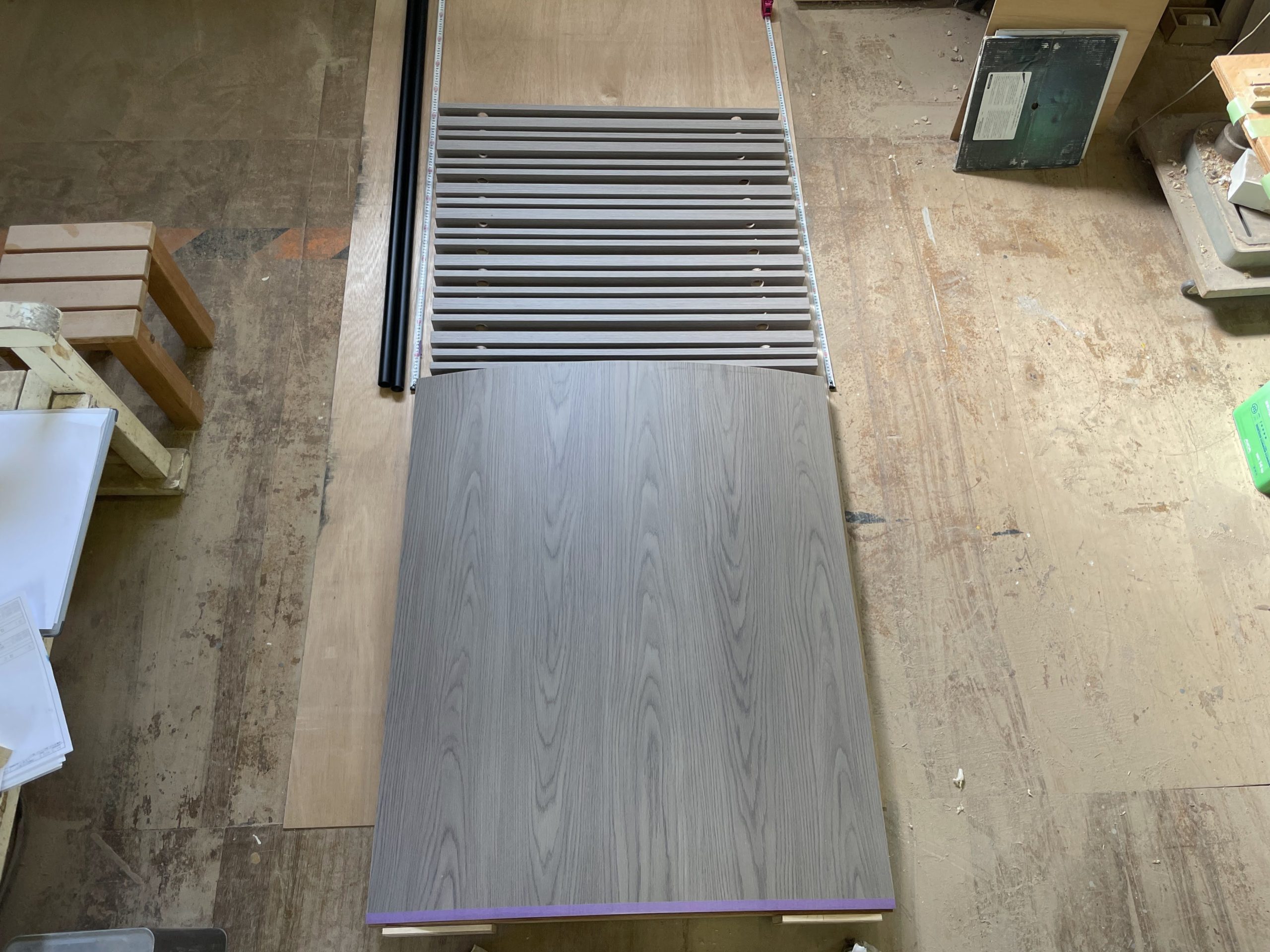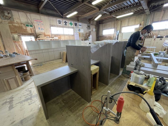そして、並行して製作中の什器の工場にチェックに行きます。