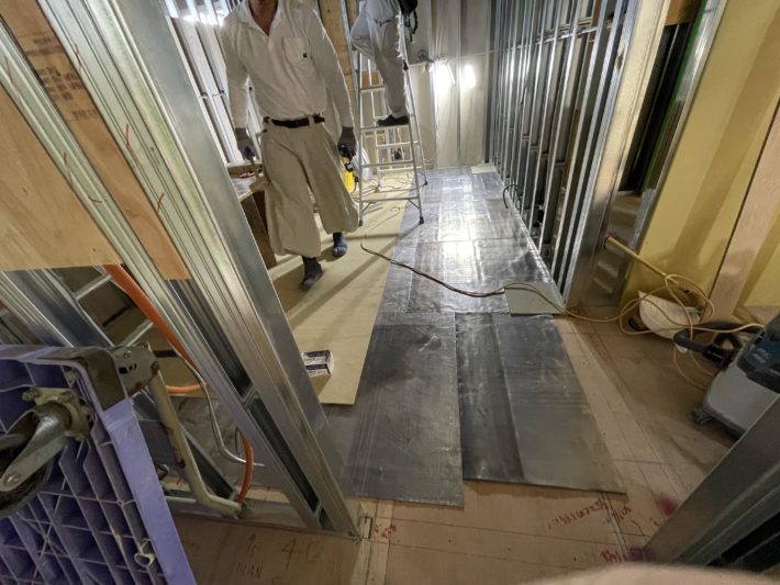 レントゲン室の床・壁には鉛を貼ってしっかりシールドします。