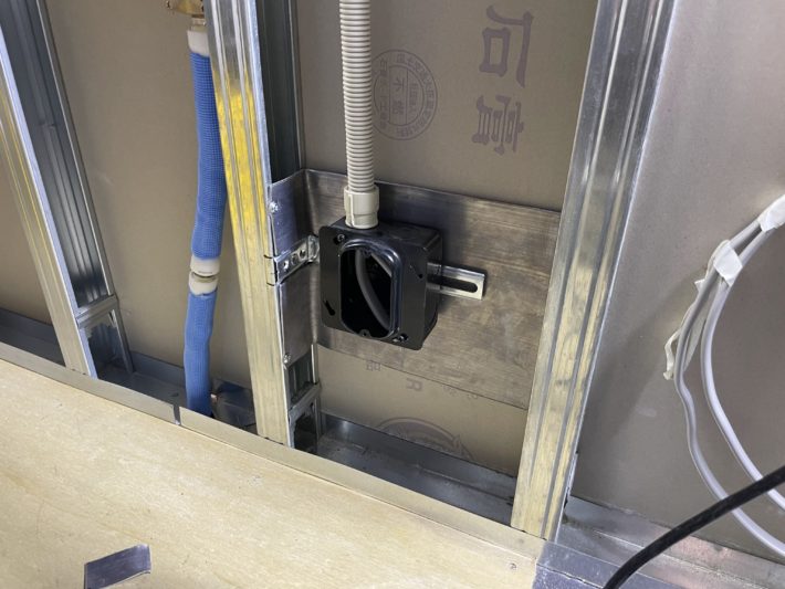 LGS(ライトゲージスタッド)と呼ばれる軽量鉄骨で構成してゆきます。