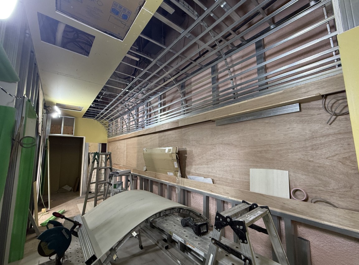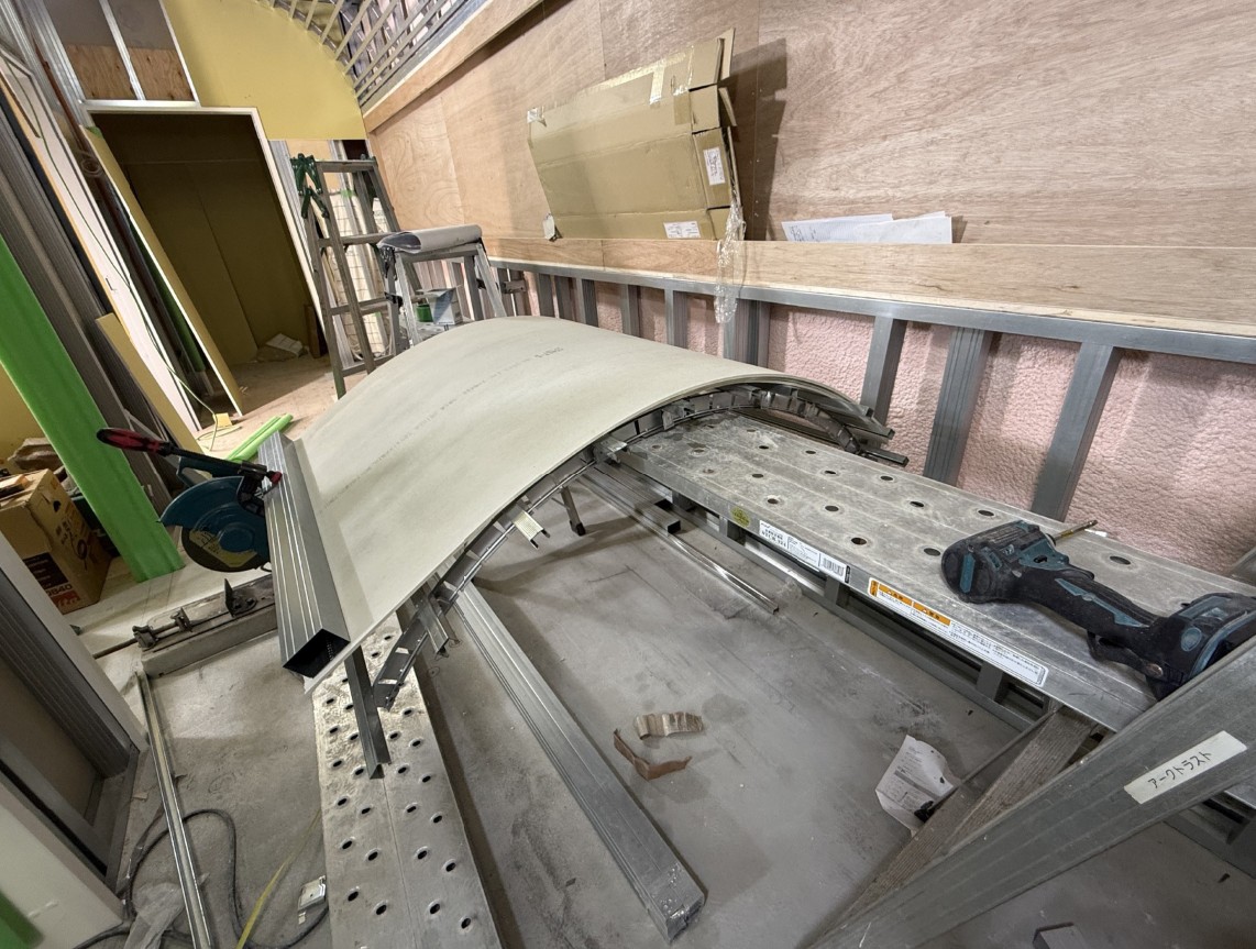 今回は曲面の壁があるので、こんな感じで下地組みしています。