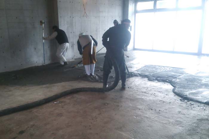田無でも新しい工事が着工しました。 こちらは床のレベルを調整するための土間打ち工事です。 ミキサー車...