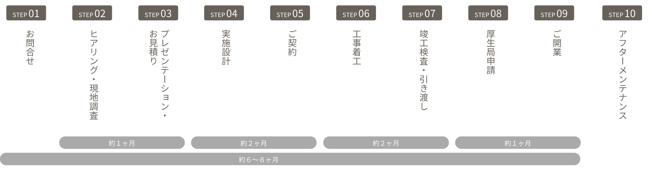 竣工後に保健所・消防署等の検査を受けたうえで厚生局への申請となります。