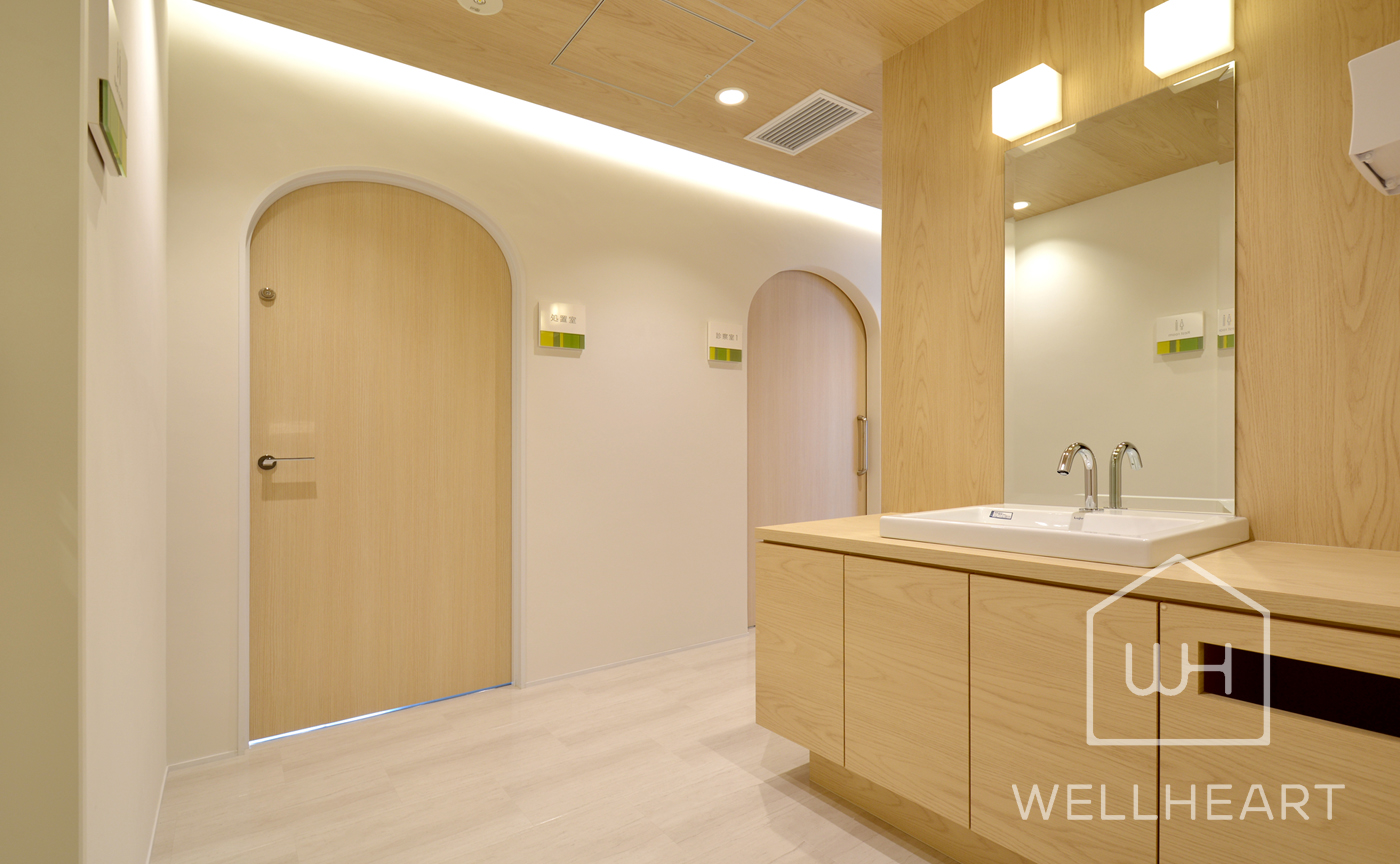 川越市の産婦人科として中核的な役割を担っている愛和病院がその分院として開院した小児科クリニックです。感染予防のために、一般外来と予防接種の患者様の動線を分離すると同時にドクターや看護師の裏動線はスムーズに各エリアにアクセスできるように計画されています。