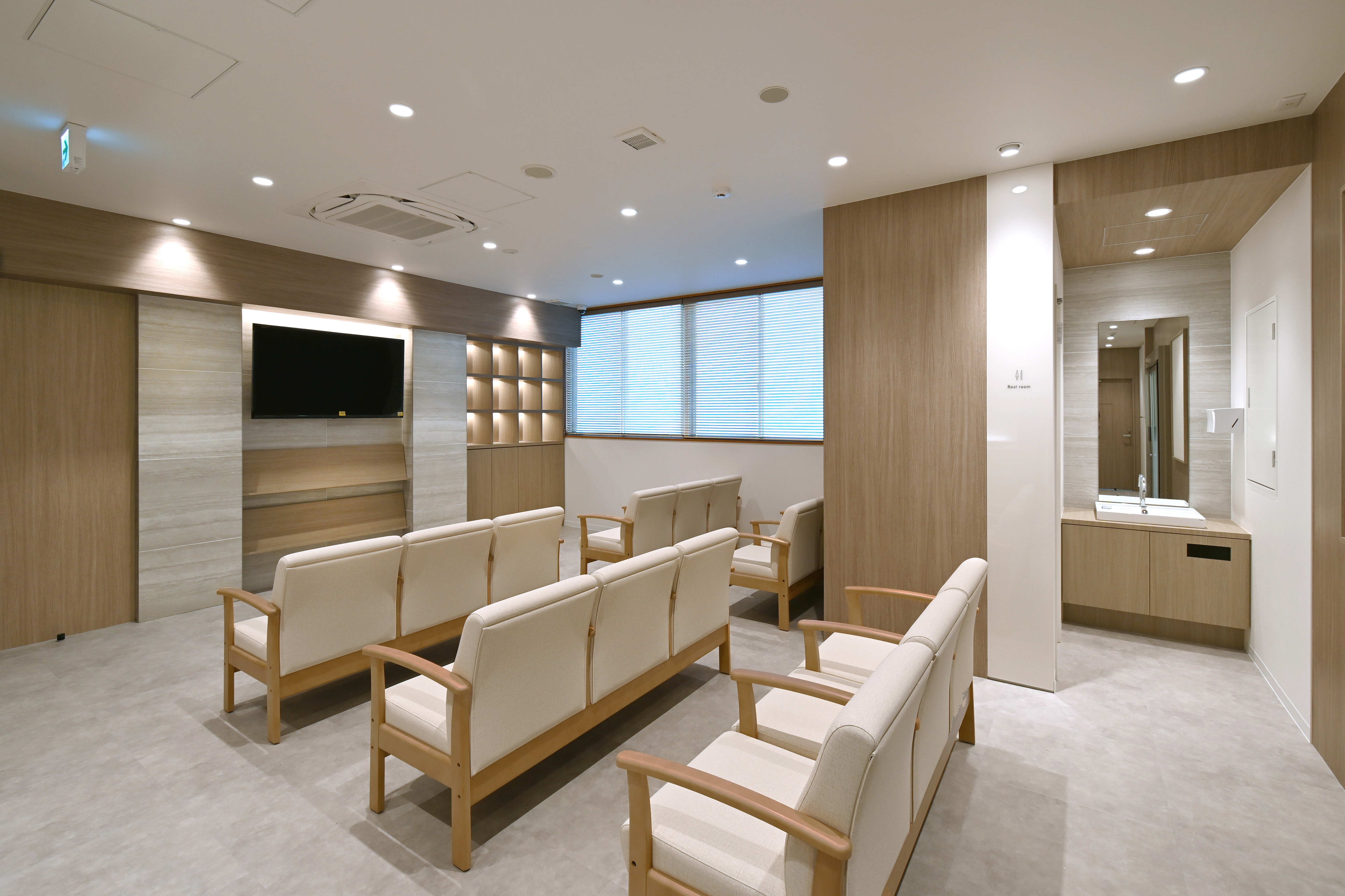 待合スペースにもゆとりを持たせ、患者様がリラックスしてお待ちいただける環境を整えました。