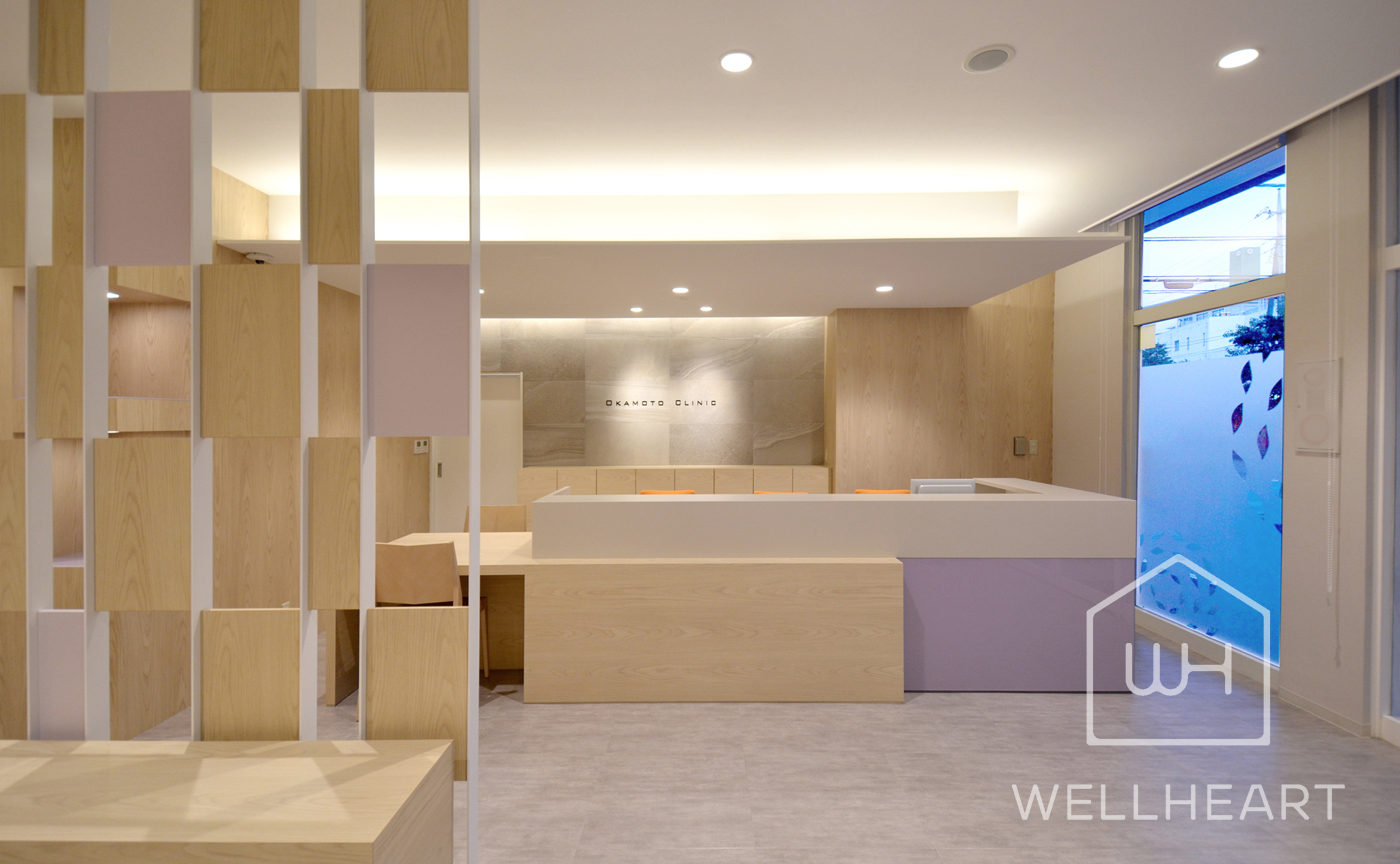 格子型のパーティションが診察エリアと待合エリアの程よい緩衝材となっており、スムーズな診療を促すとともに、クリニックの雰囲気を特徴づけるシンボル的なアイテムにもなっています。