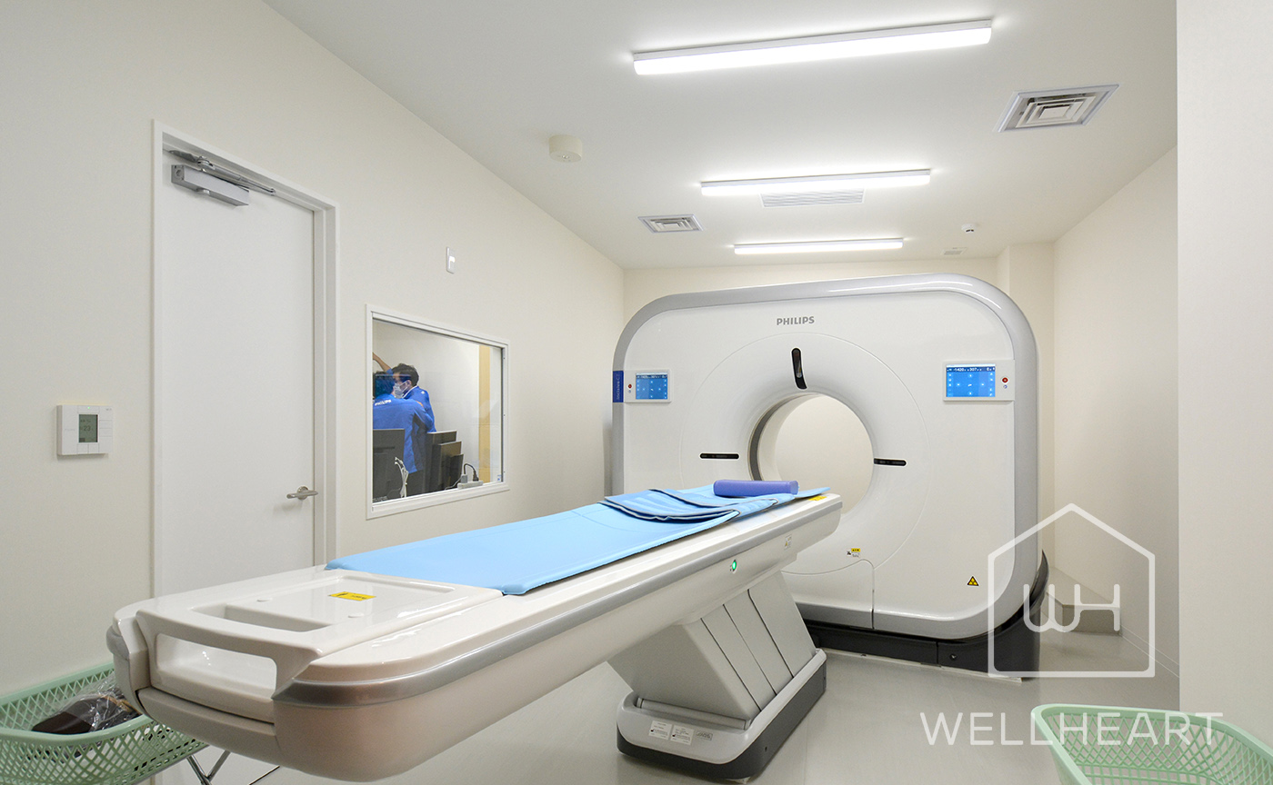 MRI・CTも併設しており、ワンストップでしっかりとした検査が受けれる体制になっています。建物の構造上2フロアに分かれており、「落ち着いた雰囲気の外来・検査ゾーン」と「明るく開放的なリハビリゾーン」に分かれています。